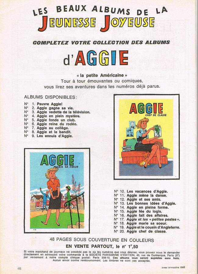 Info édition : Dernier titre paru: 10 - les vacances d'Aggie - PVEO : 80 Frs noté au 1er Plat - DL supposé: 1957