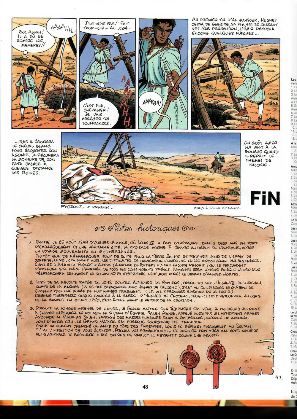 Ce nouveau cycle des croisades est riche d'un scénario pleins de rebondissement et se laisse lire avec plaisir. Les dessins de Michel Pierret n'ont pas la rondeur de ceux de Kraehn mais ne déméritent pas.