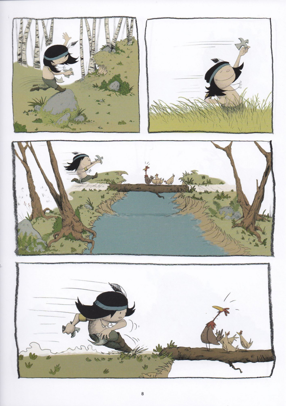 C'est vif, c'est juste, c'est pour les petits et ça réjouit les grands... Les aventures du petit indien sont scandées par celle de la famille poule, en contrepoint. Même les petits avant-lecteurs ont droit à un deuxième degré de lecture!