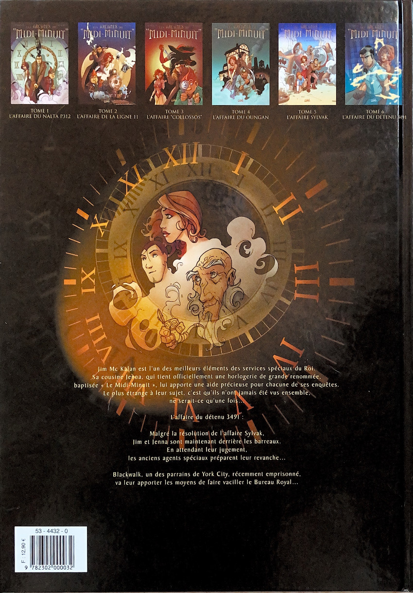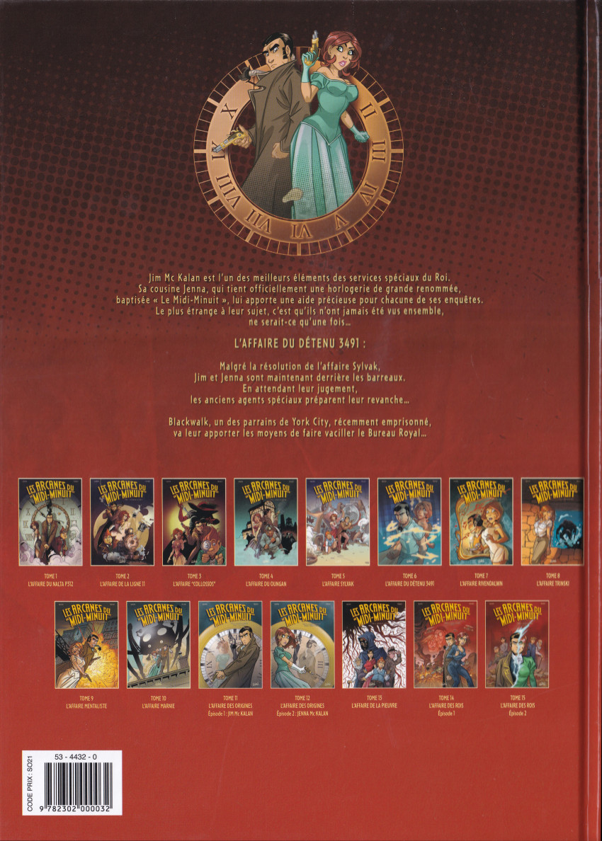 Jim Mc Kalan est l'un des meilleurs éléments des services spéciaux du Roi. Sa cousine Jenna, qui tient officiellement une horlogerie de grande renommée, baptisée Le Midi-Mingit », lui apporte une aide précieuse pour chacune de ses enquêtes. Le plus étrange à leur sujet, c'est qu'ils n'ont jamais été vus ensemble. ne serait-ce qu'une fois... L'affaire du détenu 3491: Malgré la résolution de l'affaire Sylvak, Jim et Jenna sont maintenant derrière les barreaux. En attendant leur jugement. les anciens agents spéciaux préparent leur revanche... Blackwalk,... Lire la suite