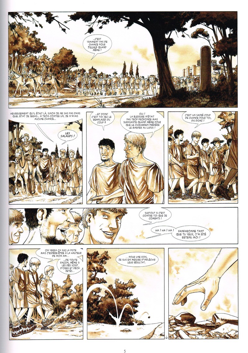 Dessins magiques toujours avec ces tons sépias qui donnent un cachet d’authenticité à cette série. La vie à l’époque romaine sans légion, sénat ou empereur comme le dit Alain Genot dans sa préface. Bravo !