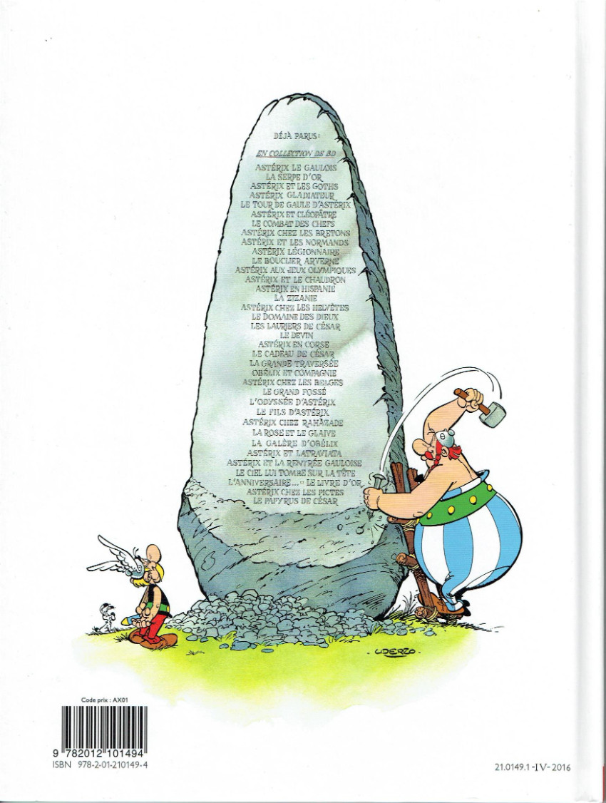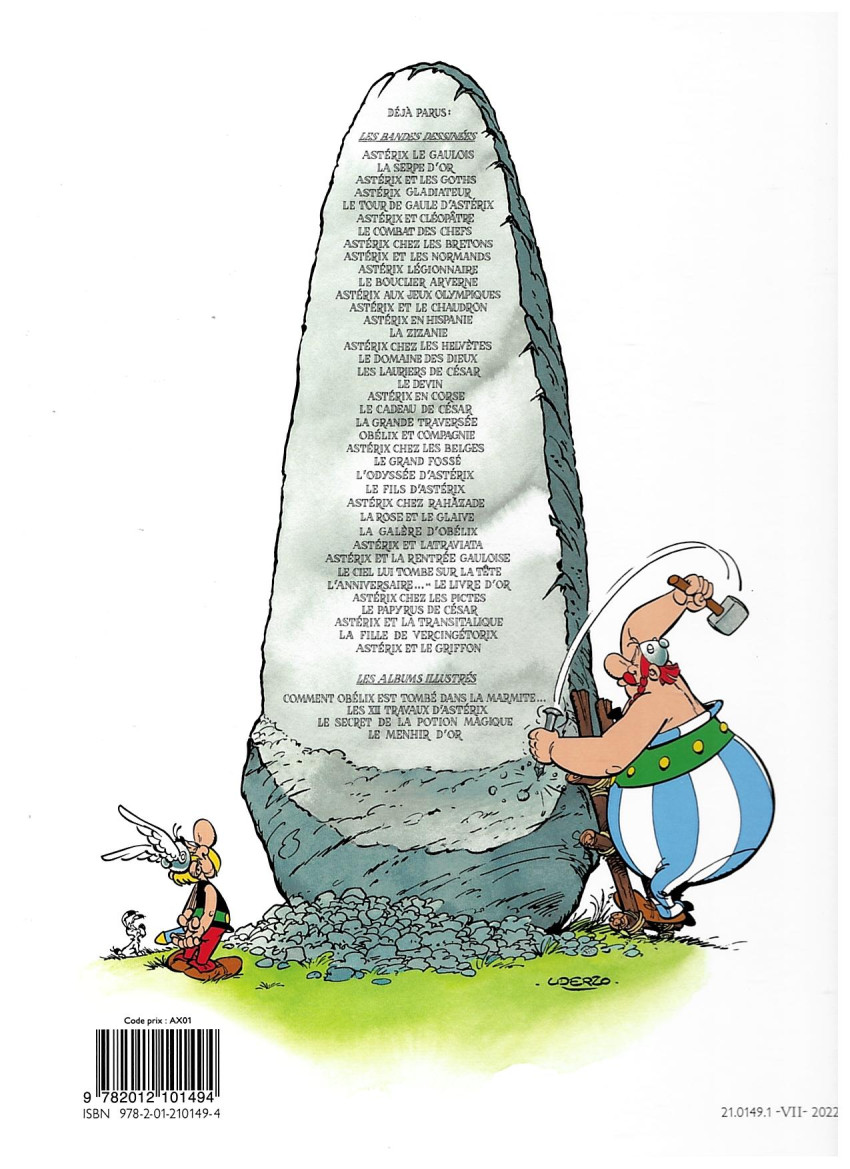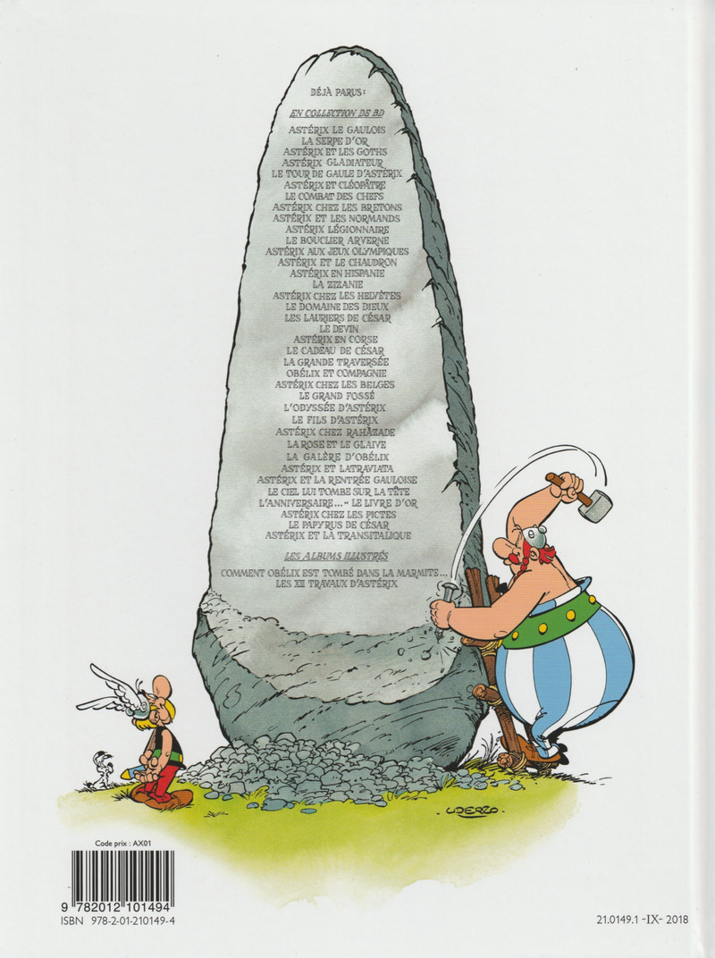 Info édition : Noté "Édition 15" et "Imprimé en Roumanie par Canale Bucarest en septembre 2018". Au verso, dernier titre "Les XII travaux d'Astérix" et en bas à droite noté "21.0149.1 -IX- 2018".