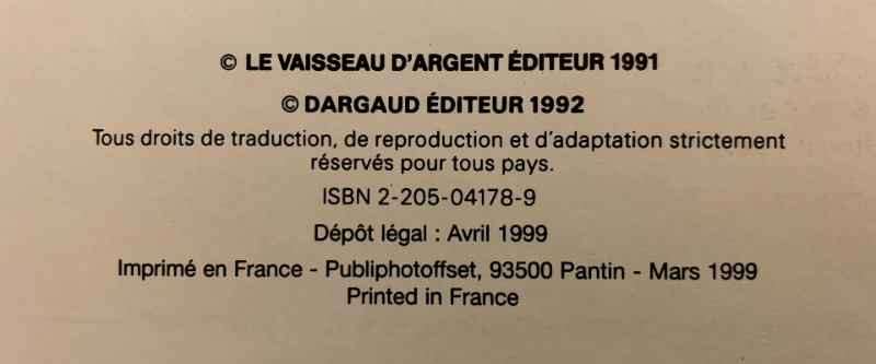 Info édition : Réédition chez Dargaud à l'occasion de la sortie du tome 2. Sur le 4e plat sont indiqués "Déjà parus 1. Le Pays roux 2. De l'autre côté du ciel".