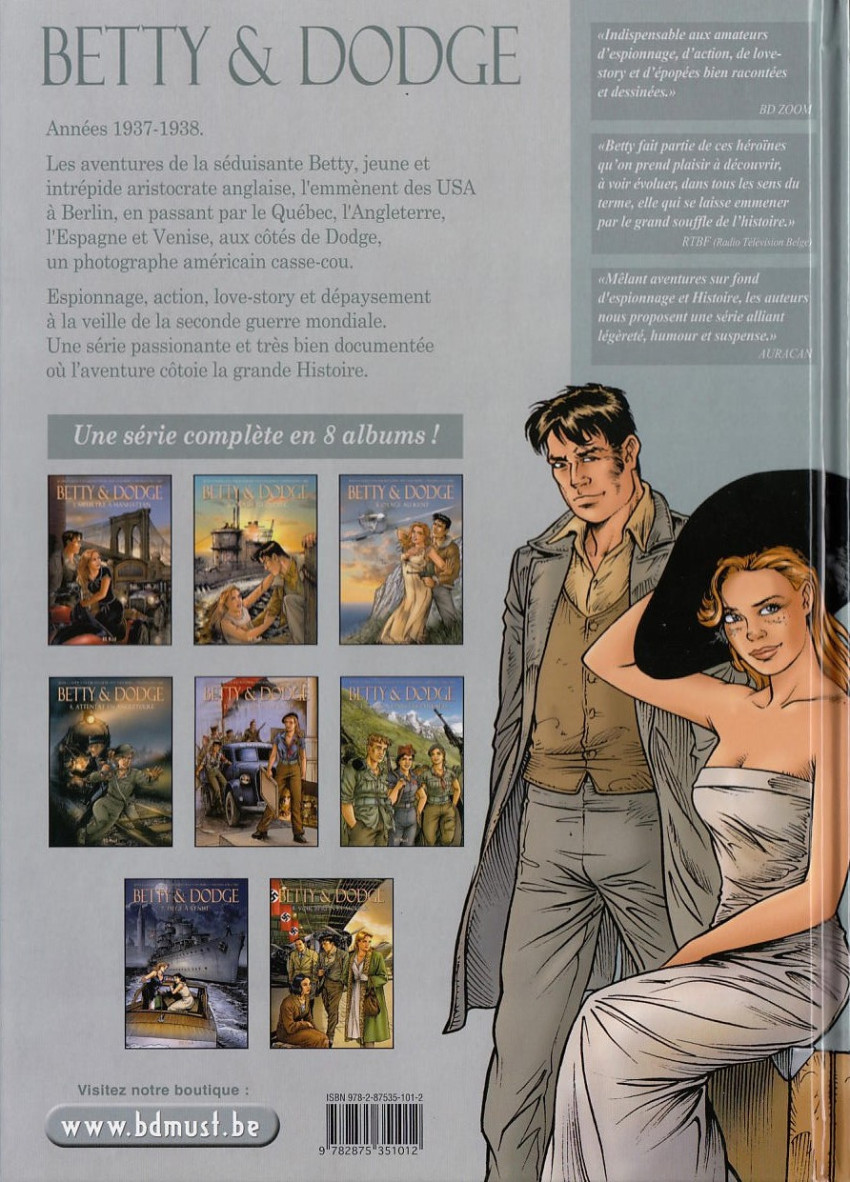 • Années 1937-1938. Betty, jeune et belle aristoctrate anglaise part aux USA à la recherche de son père, un physicien nucléaire pourchassé par les espions d’Hitler. Dans sa quête, elle est aidée par Dodge, un photographe américain casse-cou. • Espionnage, action, love-story et dépaysement à la veille de la seconde guerre mondiale. Une série passionante et très bien documentée où l’aventure côtoie la grande Histoire.