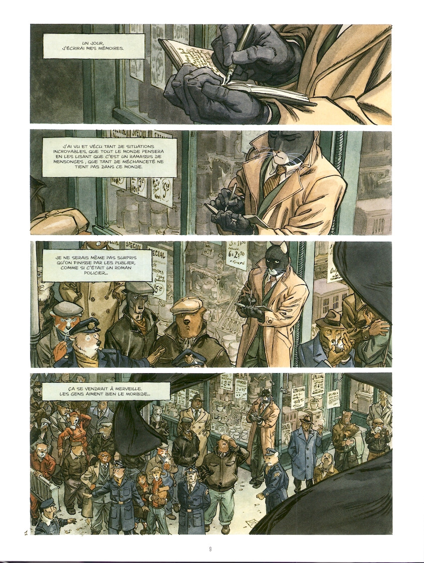 Nous allons également découvrir un nouveau compagnon de Blacksad, une fouine, et deviné sa profession, (journaliste).
