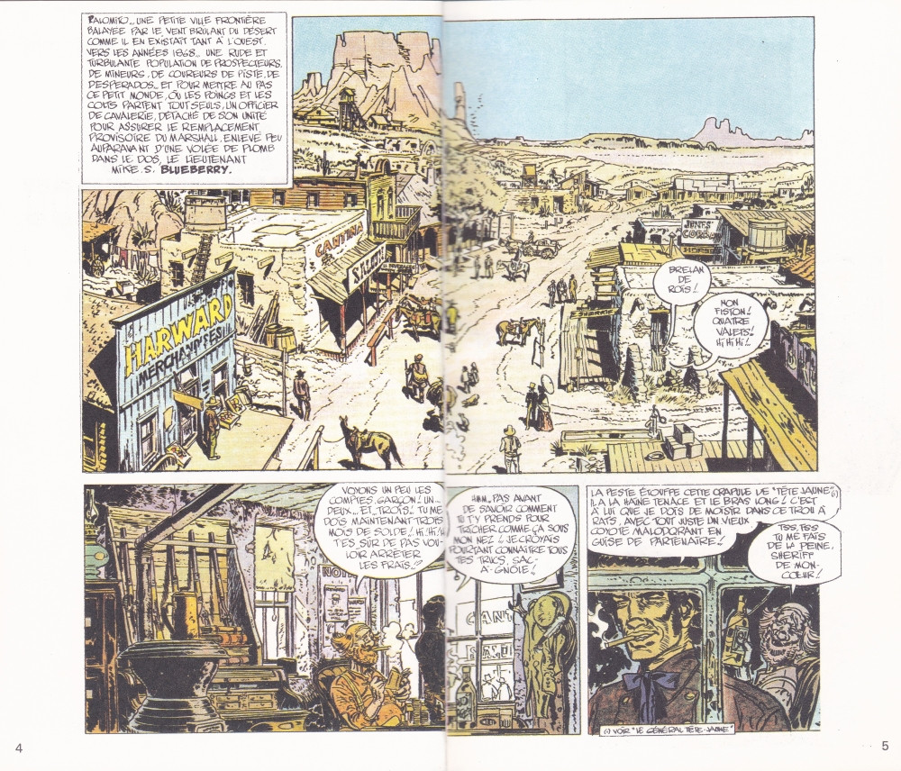 premier album de la cèlebre histoire, restranscrit totalement dans l erreur au cinèma par kounen, cet album ou blueb redescendu vert fort navajo est catapultè a nouveau pour remplacer un fèdèrale sencè remplacer un sherriff; l histoire inspirèe du chasseur d or de j. o. curwood est habilement rèinserrer par gir dans le scènar de charlier, dorènavent l intervention de giraud sera permanente dans les albums a venirs j usque au moment ou, charlier dècèdè, giraud mènera ses propres scènars, mais blueb toujour lieutenant a encore pa mal de coups a prendre sur la tète