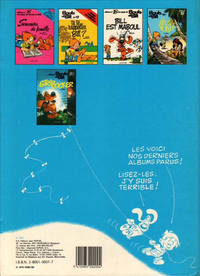 Info édition : Noté page 2 : dépot légal mai 1991, D.1978/0089/88. Au 4eme plat : Albums 16 à 21 avec bandeau sur les albums 16 et 17.