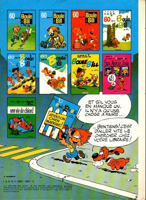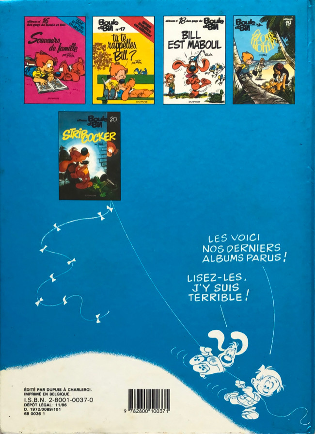 Info édition : Noté au 4e plat : "9-1979" ; y figurent tous les albums jusqu'au 15 "Bill, nom d'un chien !".