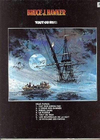 Teixido et ses hommes sont toujours à la poursuite de Bruce Hawker pour lui dérober le " puzzle ". Échappant à une embuscade, Bruce et Diana Summerville parviennent à regagner le " Sarah ", le vaisseau du Commandant Lund. Seulement, deux bateaux anglais restent aux mains des ennemis, Bruce décide de sortir les deux navires du port au nez et à la barbe des Espagnols. Mais les choses ne se déroulent pas aussi facilement et un sauvage combat corps à corps s'engage... Tout ou rien...