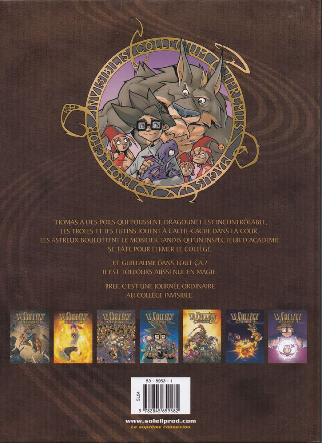 Info édition : 2eme page : que le DL 10/2004 comme renseignement 4eme plat : code barre au centre en bas + code prix Soleil "SL04" à la gauche du code barre + visuel des T.1 à T.7
