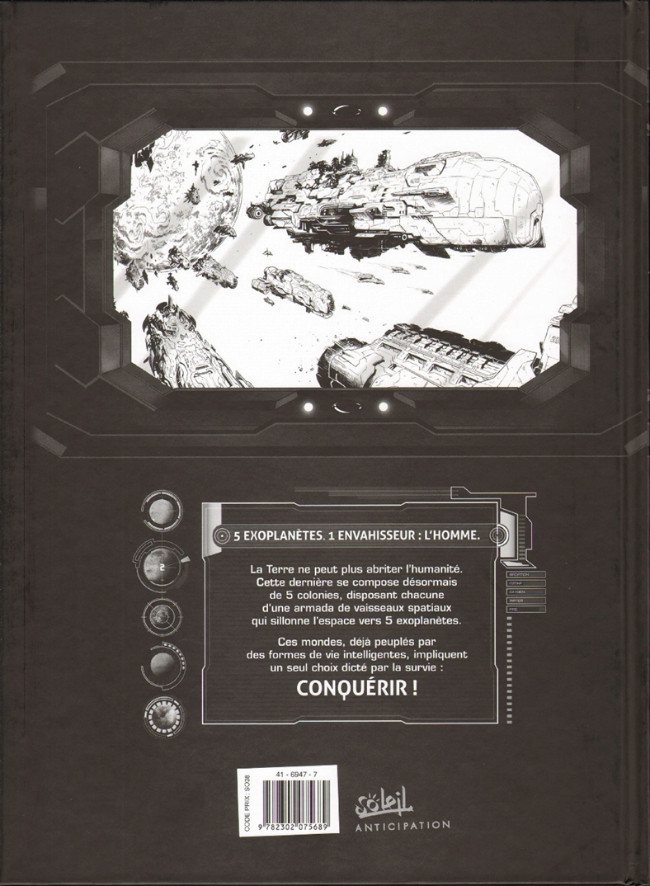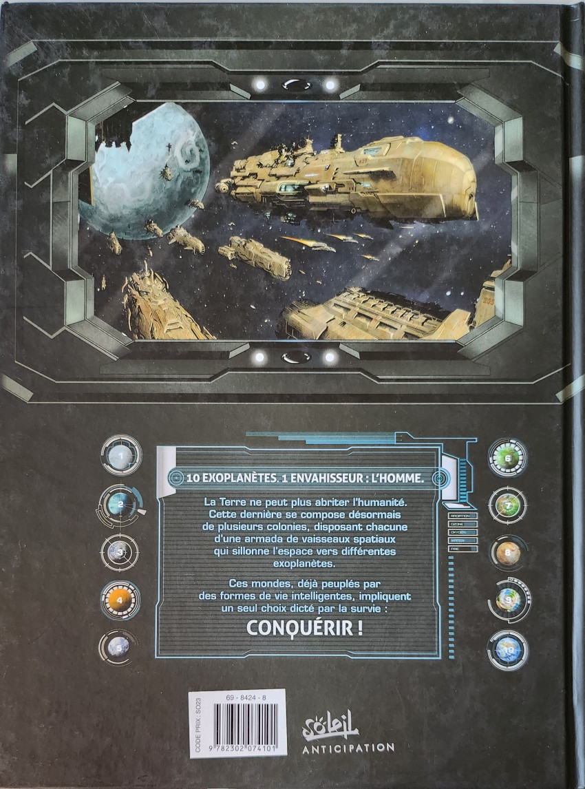 Lorsque j’ai vu la bande-annonce pour la première fois en 2018, ma réaction a été quelque peu compliquée : d’un côté j’étais à la fois très intrigué par le concept de la série, mais de l’autre, après avoir aperçu les objectifs (planètes) de conquête, j’ai eu un sens de désillusion. En effet, il semblerait que cette série allait suivre le traditionnel « cliché » de monde à biotope unique (planète de glace, planète océan, etc.) comme dans Star Wars et autre série du genre. Déception, mais, bon enfin, lorsque j’ai vu le graphisme du premier album, j’ai décidé de l’essayer… voici ma critique :