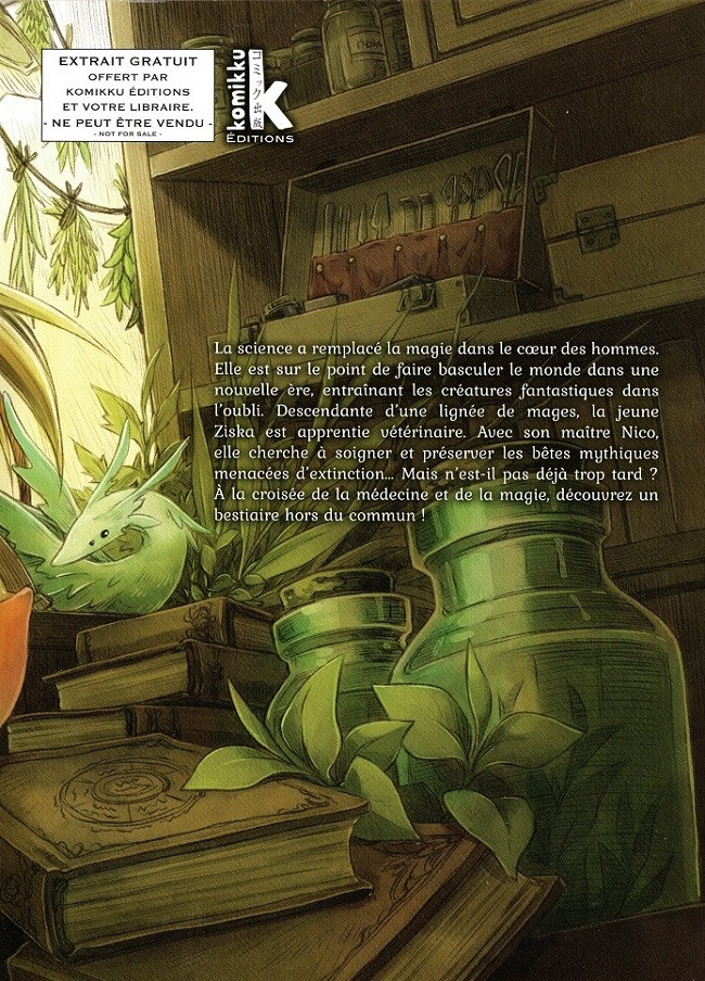 La science a remplacé la magie dans le cœur des hommes. Elle est sur le point de faire basculer le monde dans une nouvelle ère, entraînant les créatures fantastiques dans l'oubli. Descendante d'une lignée de mages, la jeune Ziska est apprentie vétérinaire. Avec son maître Nico, elle cherche à soigner et préserver les bêtes mythiques menacées d'extinction... Mais n'est-il pas déjà trop tard ? A la croisée de la médecine et de la magie, découvrez un bestiaire hors du commun !