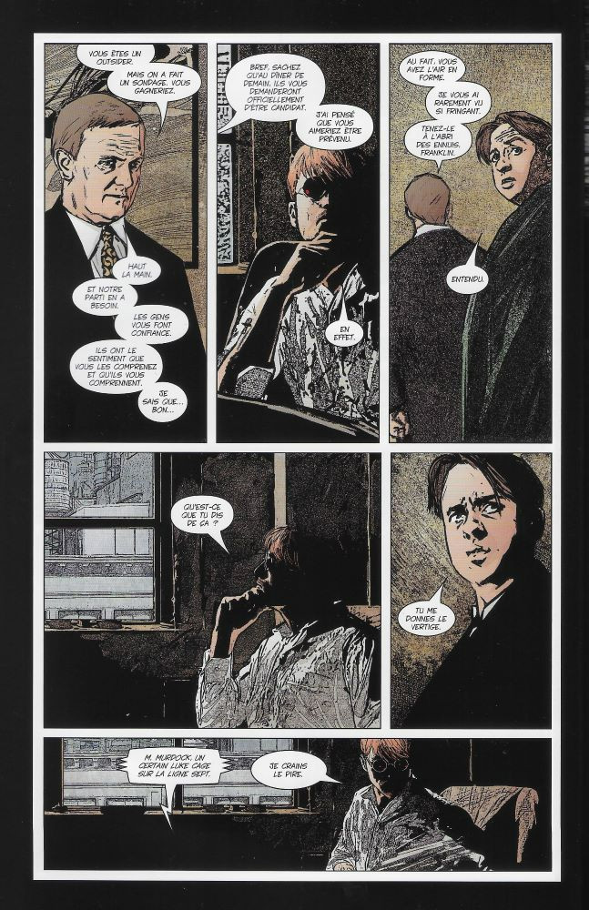 Comme souvent dans les comics, afin de laisser le dessinateur attitré souffler un peu, des épisodes fill-in sont insérés de-ci de-là, sans grande réussite généralement. Le dernier épisode de ce T3 en est un bon exemple (#65). On y retrouve successivement Spider-Man, Captain America, le Punisher et Dr Strange apportant un éclairage sans grand intérêt de leur relation avec Daredevil durant la mauvaise passe qu’il traverse ; épisode qui plus est dessiné par différents auteurs dans des styles différents voire opposés à celui d’Alex Maleev.