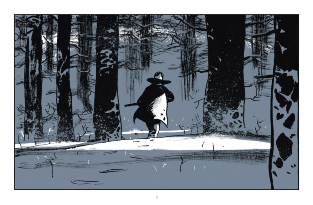 J'ai lu l'édition en bichromie (2021), qui donne un aspect magistral aux paysages -- c'est vraiment très beau. Mais voilà, le problème avec une BD où il n'y a pas une seule case de texte, c'est que l'ensemble reste somme toute assez superficiel. Cette chasse à l'homme est agréable à lire, mais on n'en ressortira pas profondément marqué. Un assez bon moment de lecture, mais sans plus pour moi.
