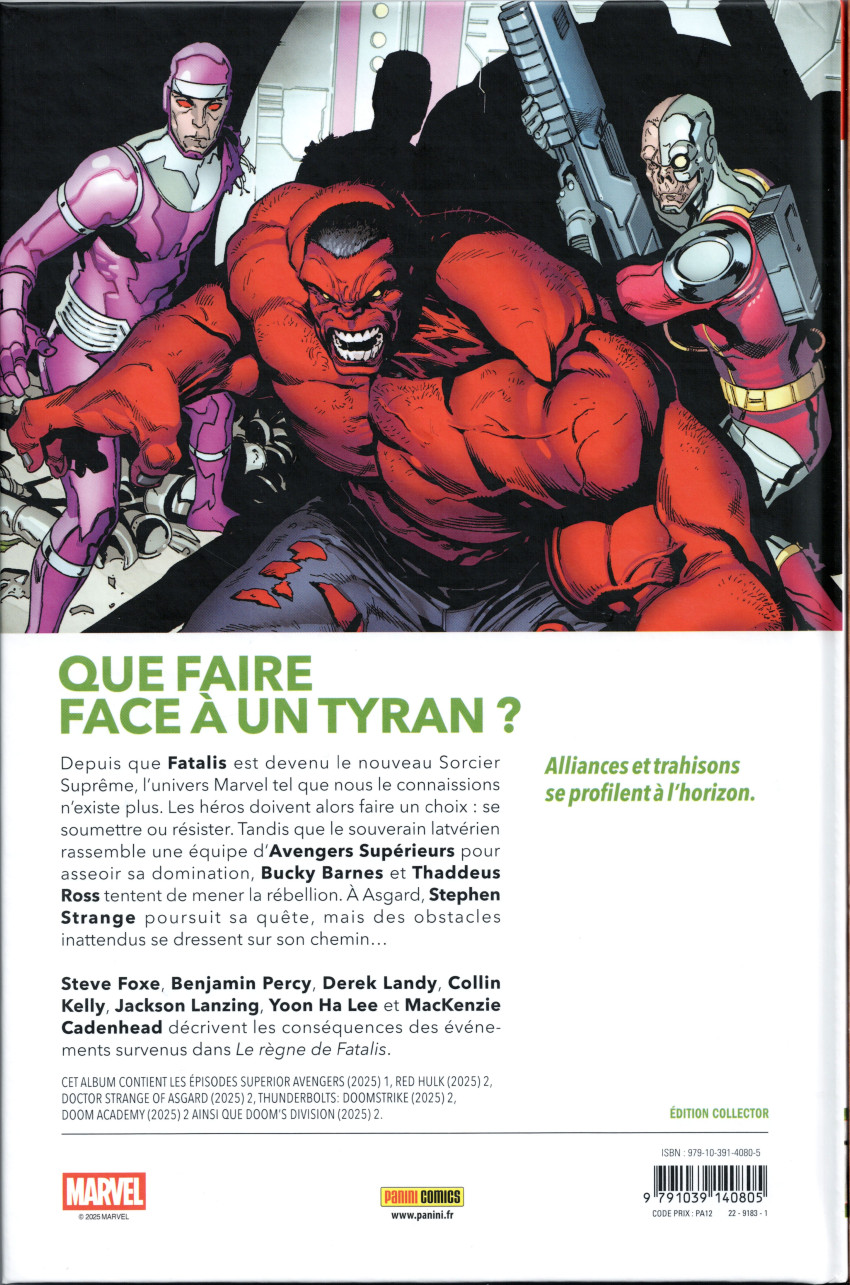 Depuis la prise de pouvoir de Fatalis, le monde tel que nous le connaissions n’existe plus. Alors que le souverain a rassemblé une équipe d’Avengers Supérieurs pour faire régner sa loi sur la planète, Bucky Barnes et Thaddeus Ross tentent de mener la rébellion. De son côté, Stephen Strange poursuit sa quête à Asgard, mais des obstacles inattendus se dresse sur chemin…