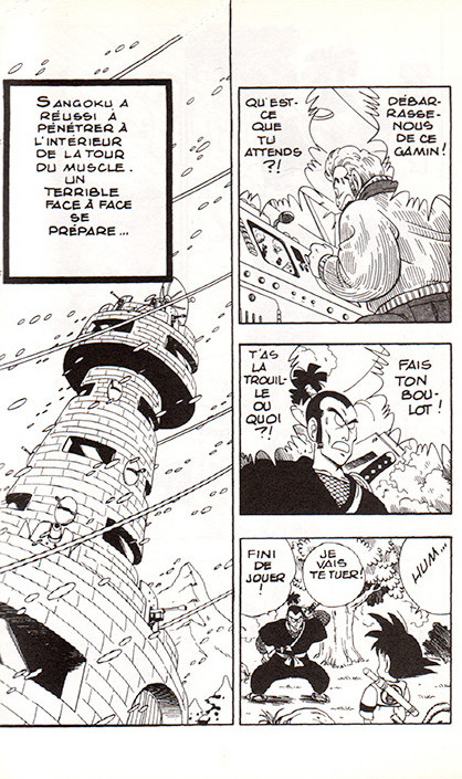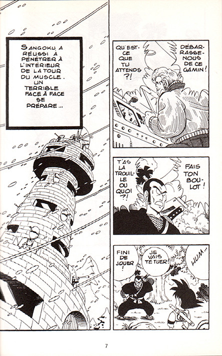 Sangoku recherche le dragon ball de son grand-père mais l'armée de l'empire du ruban rouge se dresse sur son chemin. Le contraste entre la force de Sangoku et sa naïveté fait encore des miracles. Un album très drôle et efficace.