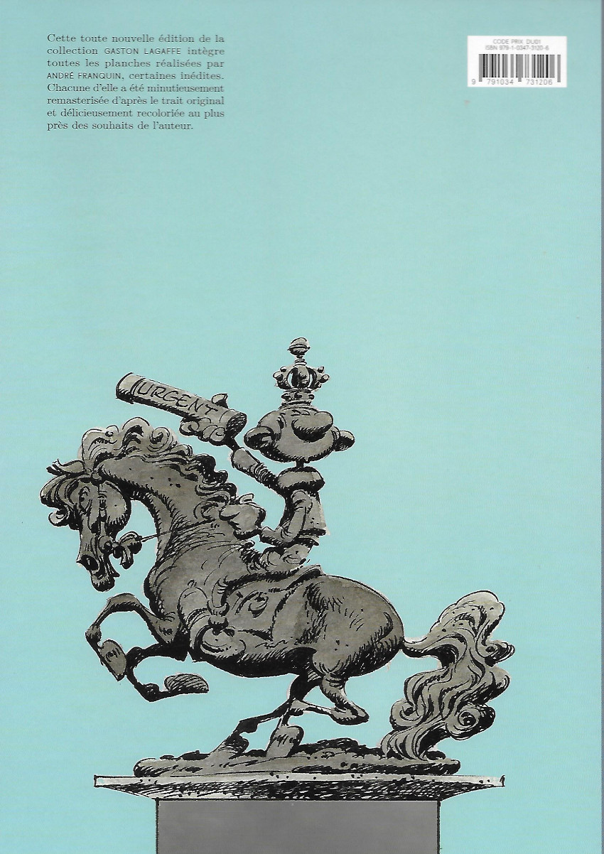 Info édition : Cet album a fait l'objet d'un tirage limité à 5000 exemplaires dans le cadre du 60° anniversaire de Gaston, accompagné d'un ex- libris représentant une dédicace de Franquin. Il rassemble les gags parus dans le journal Spirou entre le 17 avril 1980 et le 11 novembre 1986. Format 243 x 320 mm.