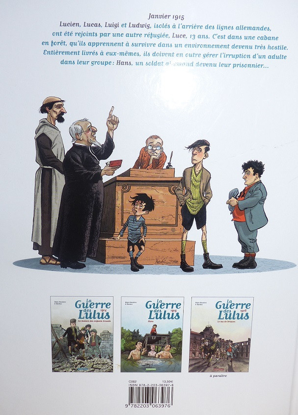 Lucas, Lucien, Luigi et Ludwig : quatre des pensionnaires de l’orphelinat de l’abbaye de Valencourt en Picardie, et que tout le monde, par commodité, surnomme les Lulus. Leur univers a volé en éclats au cours de l’été 1914. Totalement isolés à l’arrière des lignes allemandes lors du déclenchement de la guerre, ces quatre inséparables bientôt rejoints par une autre réfugiée, Luce, 13 ans, ont dû en urgence apprendre à survivre dans un environnement soudain devenu très hostile. Réfugiés dans une cabane en forêt, les Lulus doivent en outre gérer l’inconnue... Lire la suite