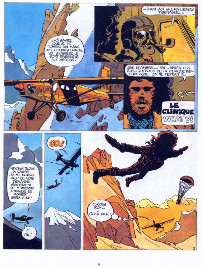 Et, aussitôt, le lecteur est happé par cette narration quasi silencieuse ou les grands espaces sont sublimés par des cadrages qui permettent d'oxygéner plus encore le visuel. le tibet de Cosey est superbe, grandiose par des couleurs bleutés et ocres. Et le "Blanc Cosey" déjà apparait.