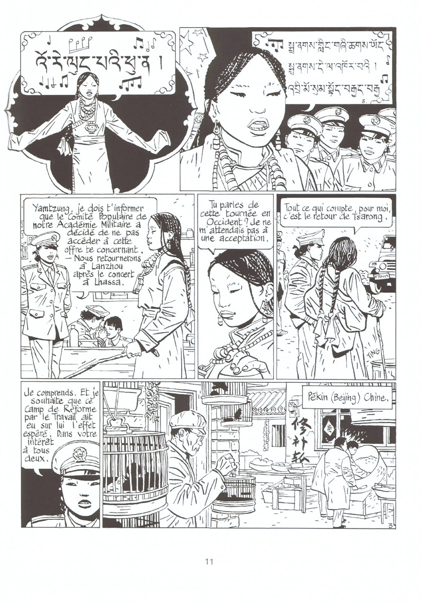 le temps d'un Tibet fantasmé est révolu. le temps de la contemplation et des grands espaces aussi. Cosey veut raconter le génocide d'un peuple, la destruction d'une culture par le colon chinois. Un long préambule écrit exprime le besoin de Cosey à rendre compte.