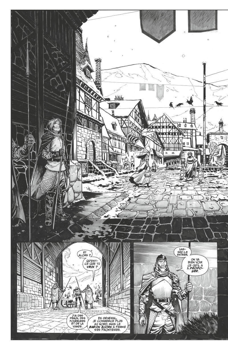 Le gros point fort de cet album est son dessinateur : Dan Mora. Il exécute un tour de force avec cet album en livrant des planches magnifiques. Son style est très élégant et les personnages sont maîtrisés et vraiment expressifs. Les décors sont formidablement exécutés. C’est grâce à ça qu’on arrive à se plonger facilement dans cette ambiance enneigée saupoudrée d’un peu de Game of Thrones (avec un tyran, un château, de la neige et des loups).