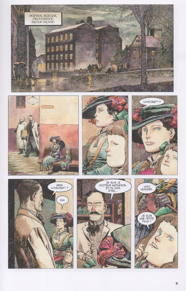 Mais côté scénario? C'est l'histoire de Lovecraft qui "vit" ses propres histoires, en quelque sorte. C'est à moitié biographique, à moitié cauchemardesque. Une très bonne idée qui s'amuse à confondre le mythe et la réalité, mais malgré le nombre de pages, tout se déroule un peu trop vite. L'histoire n'a pas le temps de respirer. On ne réussit pas vraiment à explorer la psychologie de Lovecraft.