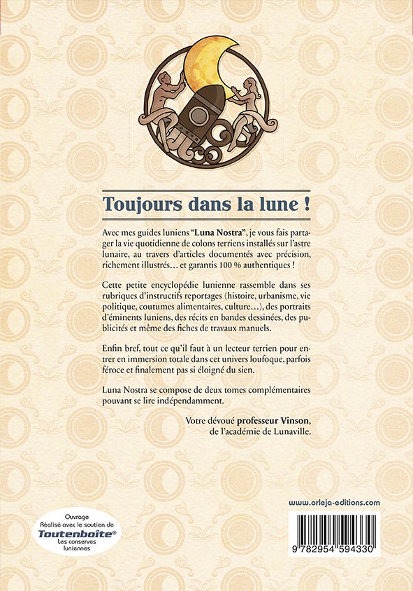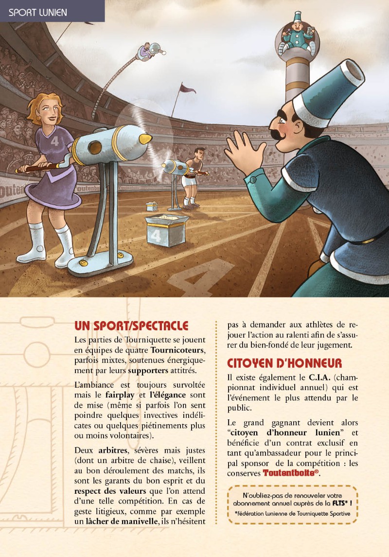 Comme nous l’avons vu dans le premier fascicule, la société lunienne est pour le terrien curieux, une source intarissable de dépaysement et d’émerveillement. Alors, continuons notre visite par la lecture d’articles traitant de transports bondissants, de culture musicale à moustaches ou encore de zoologie alimentaire... Nous présenterons également notre sport national dans une rubrique à donner le tournis et nous parcourrons l’extraordinaire Terra Museum, mémoire de nos racines terriennes... Bon voyage...