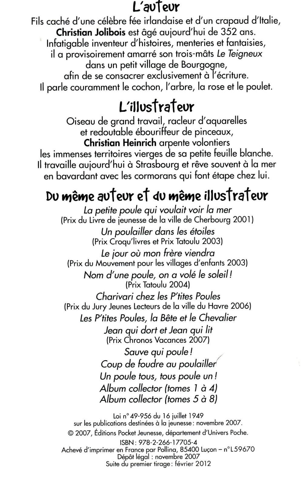 • Les p'tites Poules -INT1a2012- Album collector ©Pocket Jeunesse - PKJ 2007 Jolibois/Heinrich