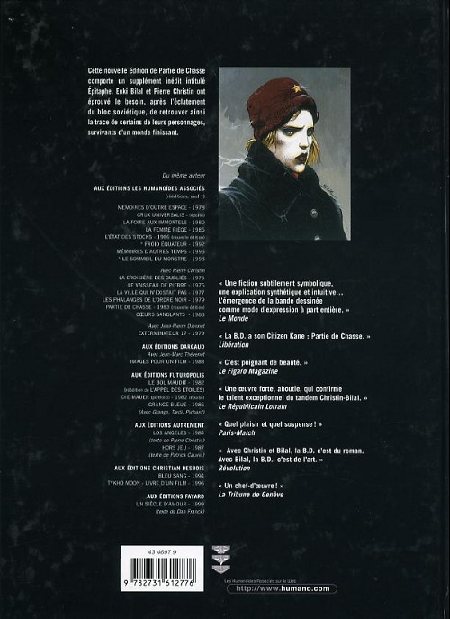 Un magnifique album., où se laissent entrevoir les craquelures de l'Empire soviétique. De vieux apparatchiks de différents pays communistes, aux carrières mouvementées, se réunissent pour quelques jours de chasse dans la campagne polonaise. C'est l'heure des souvenirs amers et des rancoeurs mal cachées. La nouvelle garde du Kremlin saura-t-elle se défaire de ces ombres du passé ? Le scénario de Christin est implacable, et le dessin de Bilal est à son apogée. Un must have !