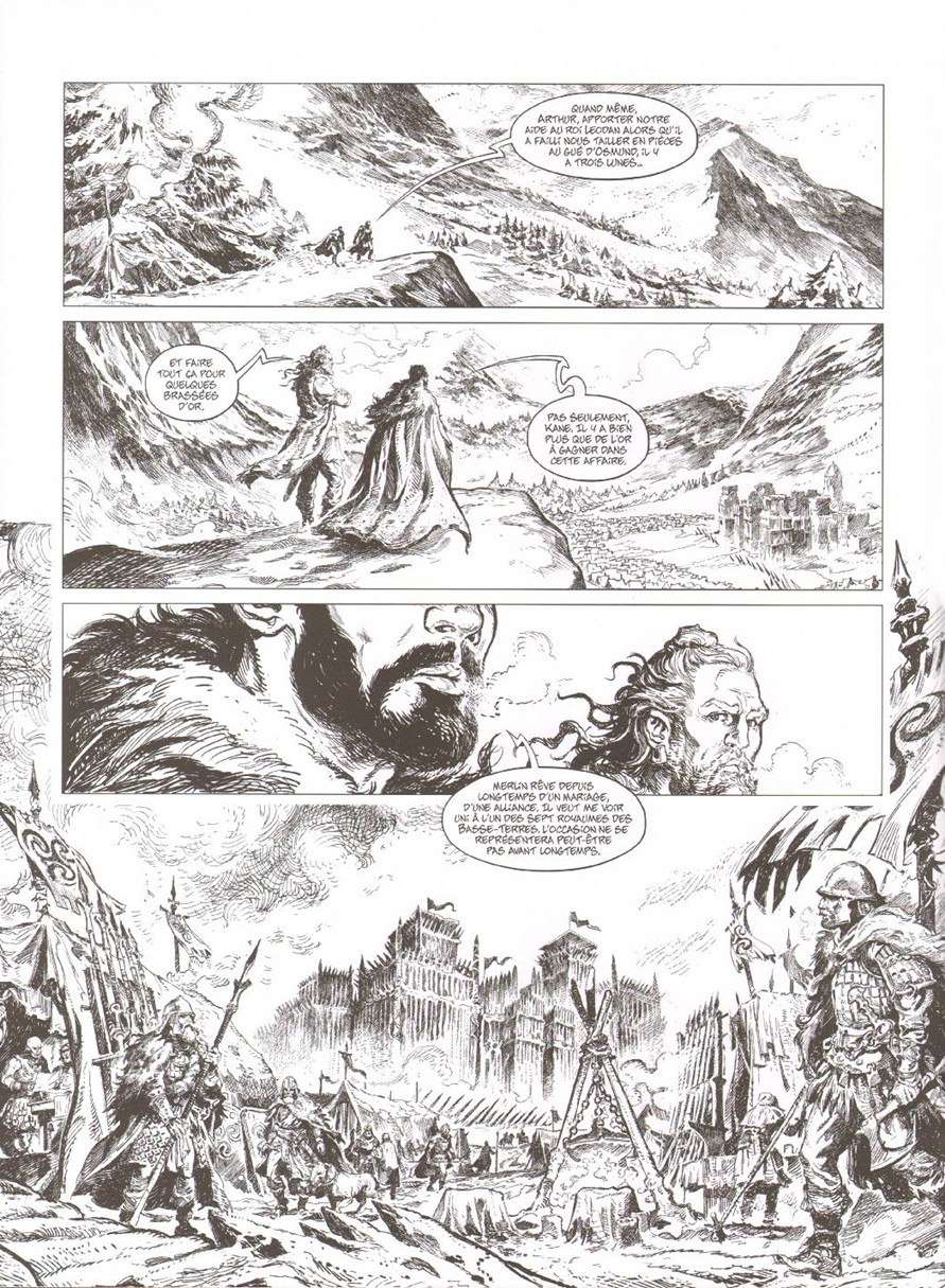 Cette nouvelle adaptation du mythe Arthurien dans un univers d'Heroic Fantasy est une réussite. Soutenu par un dessin assez fou, avec un découpage mettant systématiquement en avant le côté dantesque et / ou dangereux des lieux (les paysages inspirés des Highlands) et des ennemis, l'adaptation proposée par le Gris va certainement nous promettre moult rebondissements (on appréciera son sens du rythme).