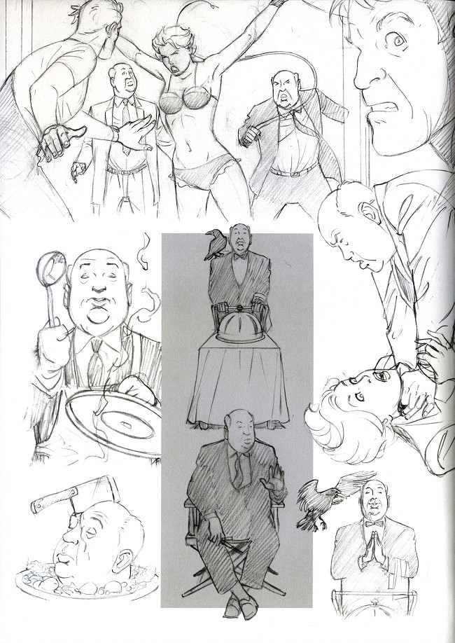 Sa documentation sur Hitchcock semble se limiter à une citation sur les acteurs qui faut traiter comme du bétail ( citation qu'il nous serre trois fois dans l'album).