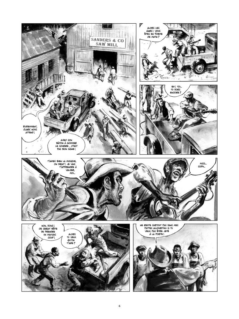 Le dessin relève le niveau : l’ambiance graphique est captivante, on se plonge dans l’ambiance du Bayou. Malheureusement, la magie est vite rompue dès qu’une scène de boxe apparaît : les mouvements sont incongrus, les attitudes grotesques, et la narration des combats confine au ridicule. À l’évidence, ni l’auteur ni le dessinateur ne se sont jamais intéressés au noble art — à coté de cet opus, la série des Rocky passe pour un documentaire.