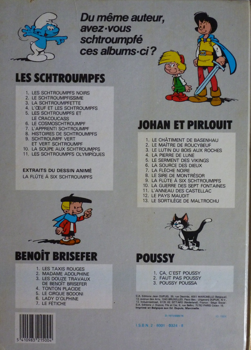Un des meilleurs albums de l’époque Peyo, avec un thème super bien écrit et maîtrisé. Je ne parle ici que de l’histoire principale, la deuxième partie étant une série de gags en une page.