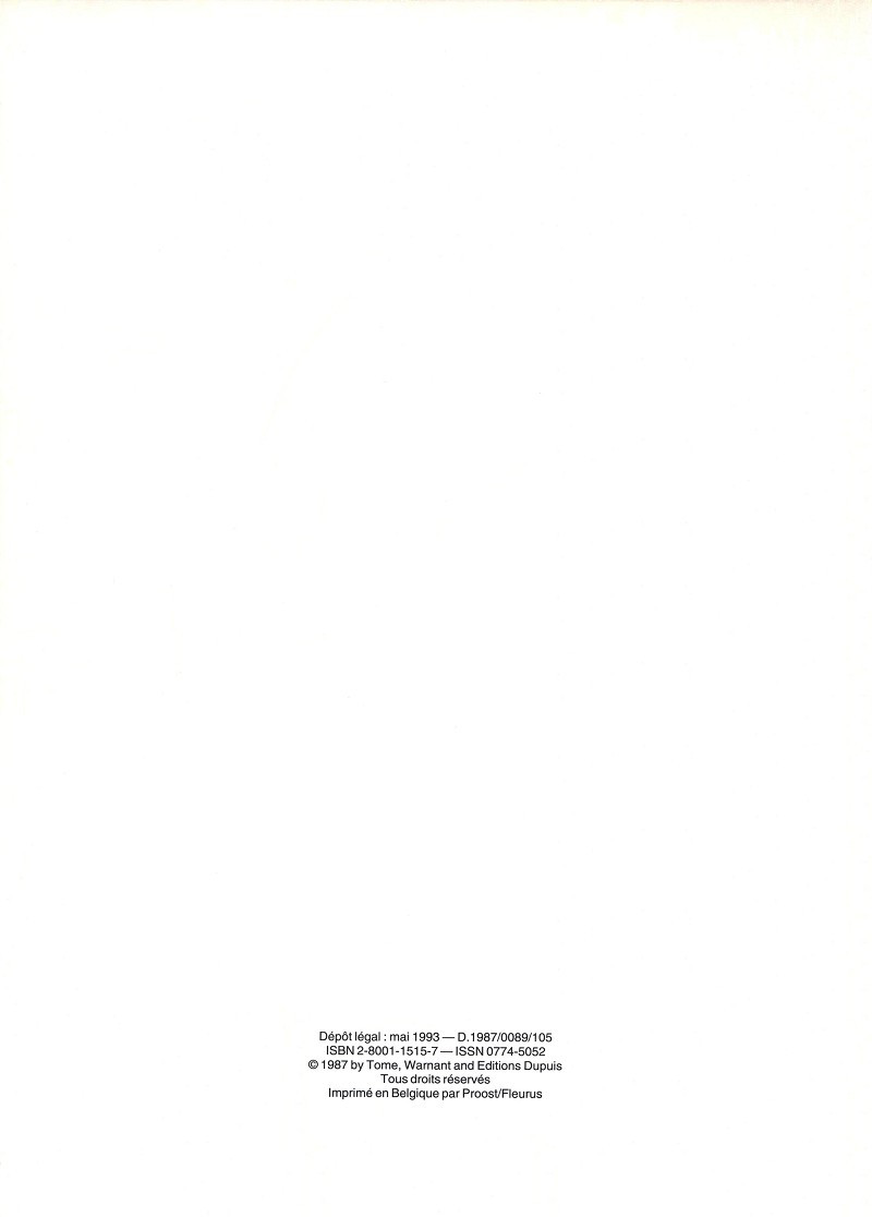 Info édition : Noté : D.1987/0089/105 7 tomes parus sur le 4°plat Le DL noté est celui de l'EO. Pas d'info DL autre que ci-dessus. Impression/DL entre 11/95 (tome 7) et 11/96 (tome 8)