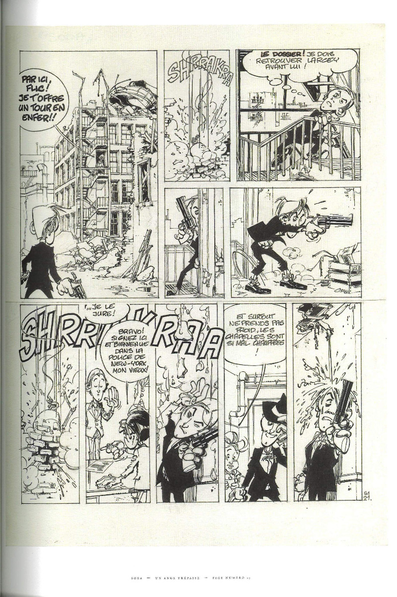 Humour omniprésent et dessin très accessible, pas de doute, Soda s’adresse à un large public. Au fil des albums, Philippe Tome aura toutefois donné à sa série une touche plus noire qu’il n’y paraît à première vue, la vie quotidienne d’un agent de police dans la Grosse Pomme n’étant pas précisément de tout repos. Lors de ses enquêtes, Soda entre donc en contact avec la lie de la société américaine. Si l’angle de vue ne manque pas de légèreté, c’est donc bien une réalité peu reluisante qui sert de toile de fond aux pérégrinations d’un héros qui ne manque pas d’attirer la sympathie. Il gagne aussi progressivement en épaisseur, aux prises avec une vocation parfois vacillante à force de coups portés et reçus au jour le jour. Il est parfois difficile de résister à l’envie de prendre la tangente avec Linda, collègue et plus si affinités...