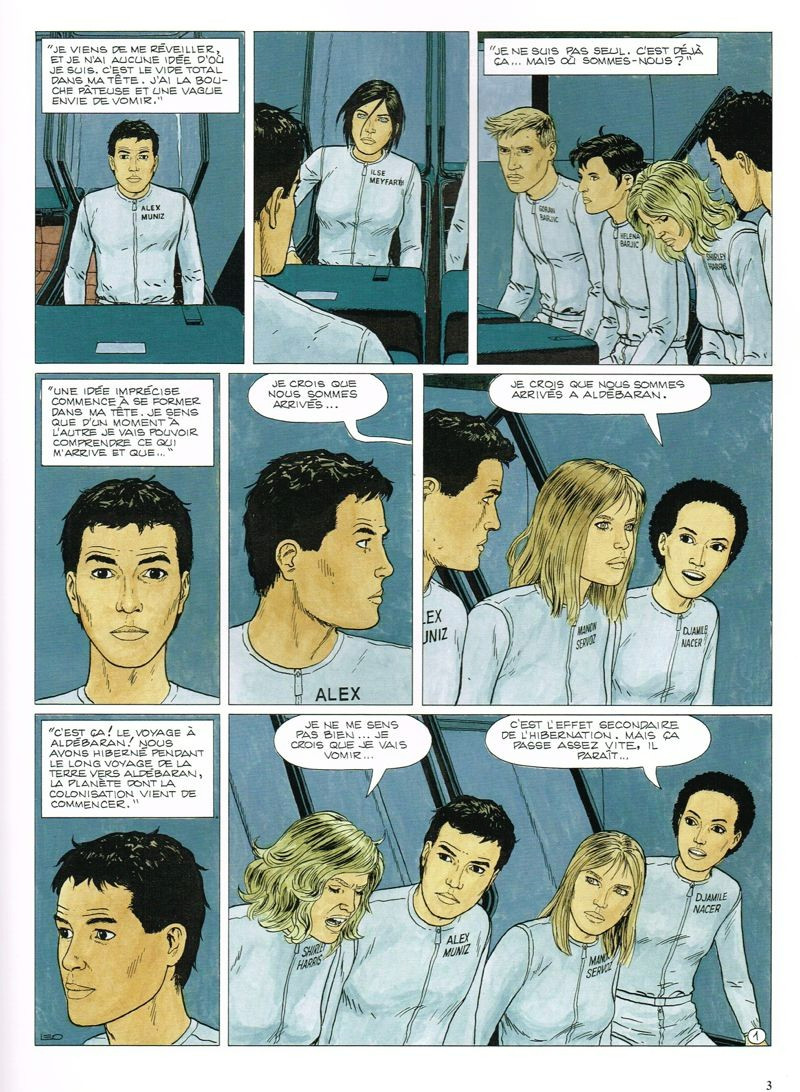 En immense adorateur des cycles d'Aldébaran, je suis ravi de pouvoir me lancer dans cette série parallèle... Et je suis loin d'être gêné par le côté figé du dessin de Leo, puisque celui-ci ne manque jamais de me faire vibrer et de me rappeler d'excellents souvenirs. Les codes sont les mêmes d'album en album, mais ils sont diablement efficaces. C'est le cas également du scénario, dont les ficelles semblent connues, mais qui offre malgré tout son lot de rebondissements. Quant aux personnages, je trouve leurs interactions passionnantes... Dès les premières pages, on sent les individualités s'imposer et les groupes se former. Tout est clair, alors que ce n'est pourtant pas facile d'introduire d'un coup un groupe de douze personnes en début d'album. Mais l'auteur n'a visiblement pas terminé de relever les défis avec succès, et nous voilà donc repartis pour l'aventure !