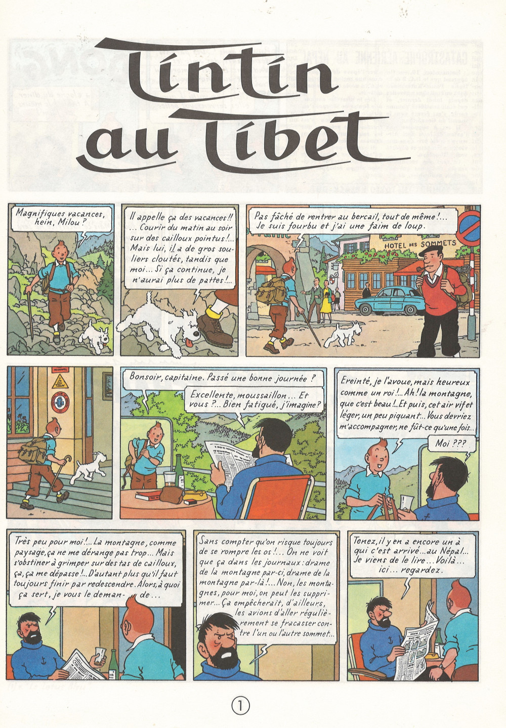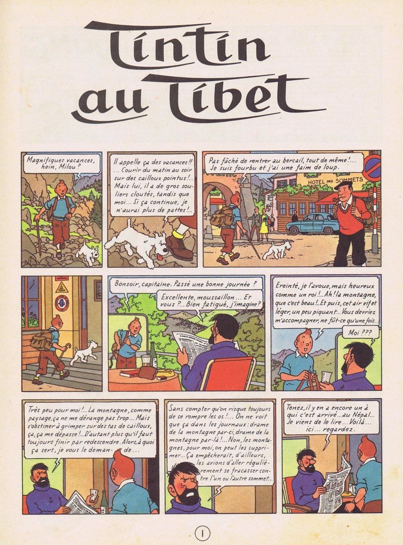Un avion de ligne à bord duquel le jeune Chinois Tchang se rendait en Europe s'est écrasé dans l'Himalaya. Tintin au Tibet, pure histoire d'amitié, sans le moindre méchant, décrit la recherche désespérée à laquelle Tintin se livre pour retrouver son ami. Ce récit pathétique, qui rompt avec le ton extraverti des épisodes précédents, démontre que la fidélité et l'espoir sont capables de vaincre tous les obstacles, et que les préjugés - en l'occurrence, à l'égard de l'"abominable homme des neiges" - sont bien souvent le fruit de l'ignorance.