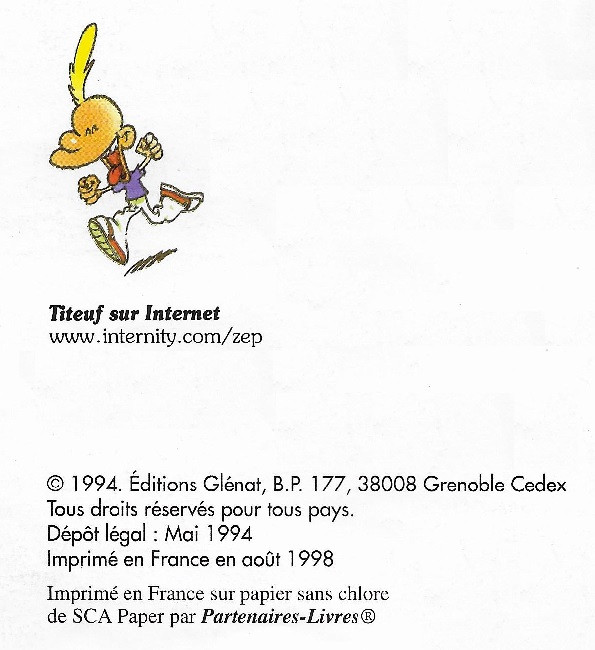 Info édition : Page de garde - Dépôt légal : 1994 Imprimé en France en août 1998. 4e plat 5 photos de couvertures.