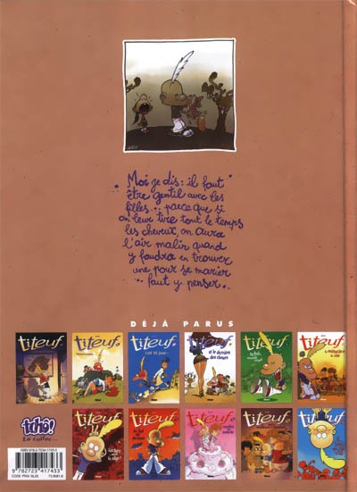 Pareil, que les autres, albums, des visages des plus en plus travaillés, aux cours des différents albums... Titeuf, a dans cet album appris a être gentil avec les filles, ce qui on le voît n'est pas toujours le cas par la suite (Lol)...