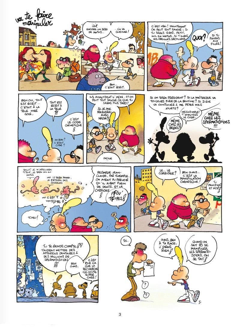 Un language qui est maintenant Culte.... Ce qui est bien dans titeuf, c'est qu'il s'exprime avec leur language personnel, qui est très drôle....