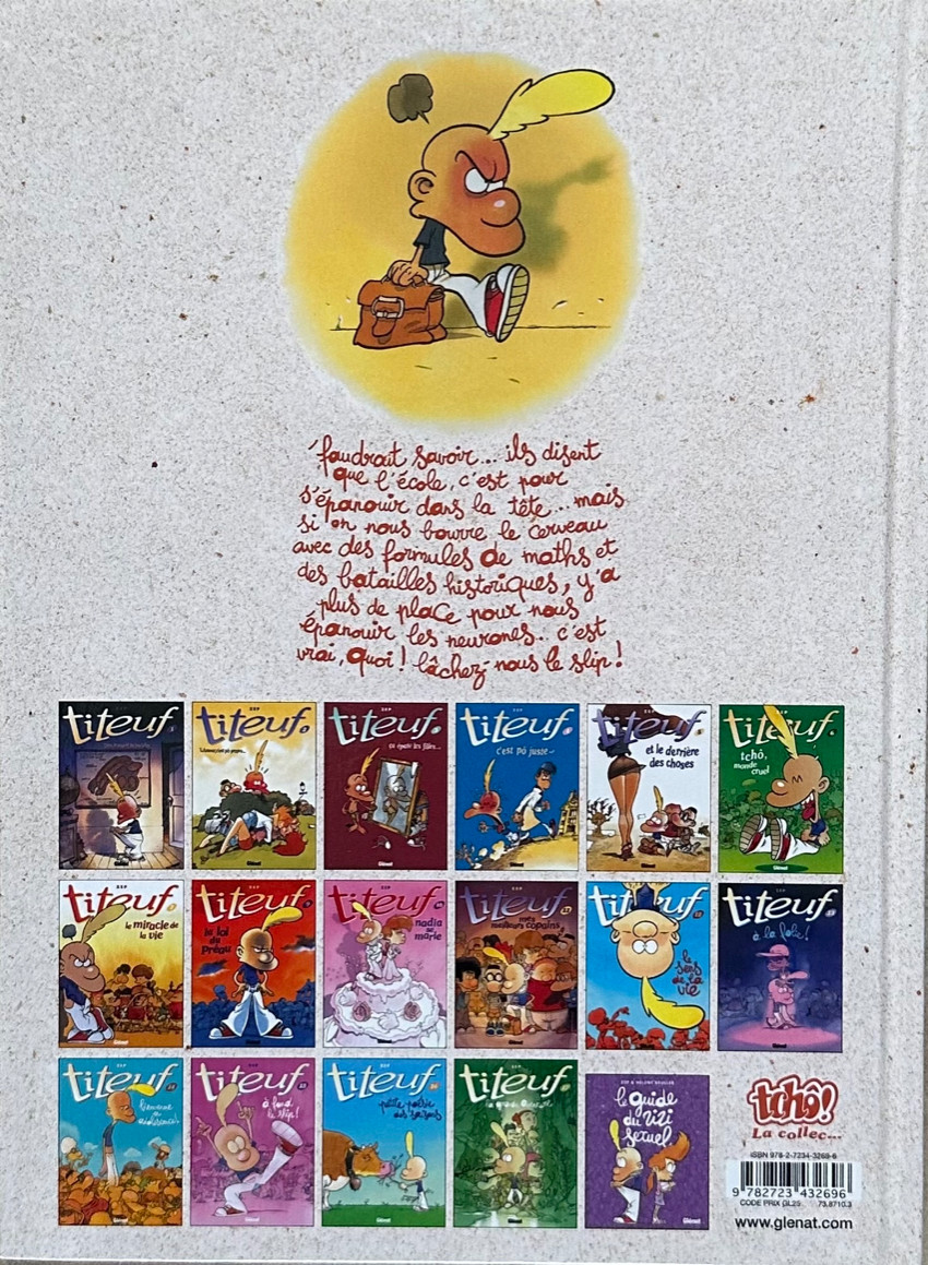 8ème album, apparent, titeuf en a marre de l'école, des baffes dans la figures, de sa petites soeurs...ect... il aimerait qu'on lui lâche le slip... :)