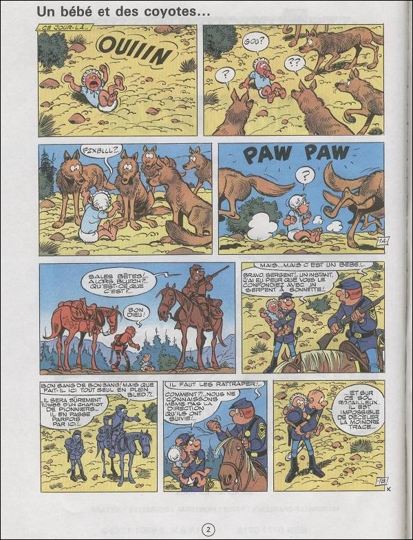 Un bébé et des coyotes : De retour de patrouille Chesterfield et Blutch trouvent un bébé abandonné. Ils le ramènent à Fort Bow. Amélie Appeltown décide de l’adopter. Baby blue : Depuis l’arrivée du bébé, Fort Bow s’est transformé en pouponnière au plus grand désarroi du colonel Appeltown. Baby red : Bryan et Tripps partent en ville dans l’optique de trouver un orphelinat. Après une halte au saloon le bébé leur est retiré par la sœur de feu le général James Sourspittle tué par les Comanches. Pour pouvoir récupérer le bébé, le malin Blutch fait croire... Lire la suite