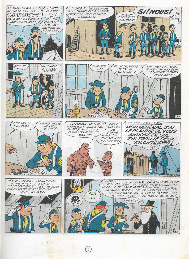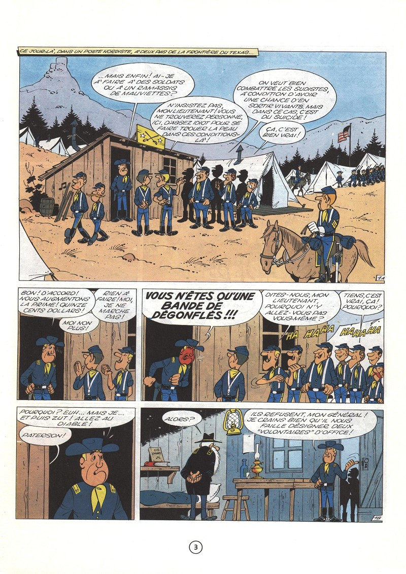 Prépublication dans Spirou (1776 à 1795) en 1972. Le sergent Chesterfield et le caporal Blutch arrivent dans leur nouvelle affectation où le général cherche désespérément des volontaires pour une mission périlleuse. Alléchés par les quinze cents dollars de prime, nos deux acolytes signent sans réfléchir. Leur mission est simple : s’infiltrer chez les Sudistes et détruire voies ferrées, dépôts de munition, ponts, récoltes de coton afin d’affaiblir l’ennemi. Pour ce faire, deux mercenaires mexicains, José et Pedro qui connaissent parfaitement cette... Lire la suite