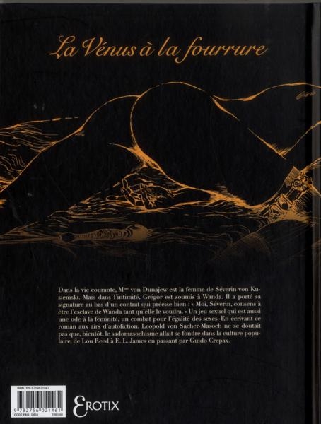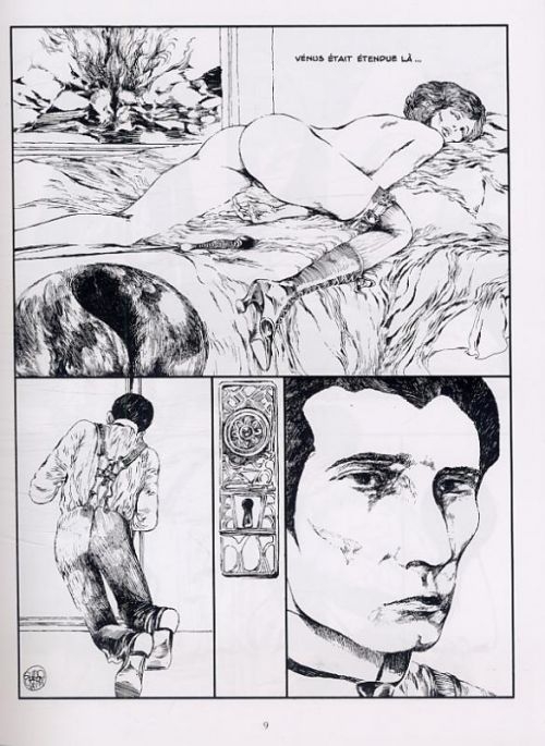 En effet, le dessinateur italien a choisi de déconstruire complétement le récit, pour ne conserver que les scènes érotiques et sado-maso. Très peu de narration, aucun récitatif. Seul le dernier chapitre, où on en apprend plus sur le contrat moral qui lit Séverin à sa femme, vient quelque peu éclairer le lecteur.