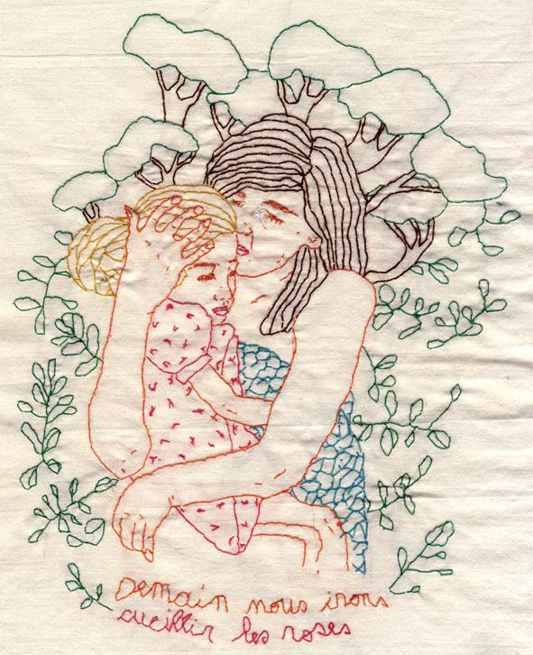 Derrière les délicats ourlements brodés et sous la couture, il y a l'hymen déchiré et le placenta. Aurélie William Levaux tisse ses rêves d'interrogations douloureuses. Sous le fard de ses paupières, pendant son sommeil tourmenté, l'éternel aiguillon du désir féminin : « faire la maman et la putain ? » Fil conscient, fragile, douloureux, toile écrue et colorée, motifs végétaux évoquant une sexualité onirique et fertile, les entrelacs d'Aurélie W. Levaux enserrent le lecteur dans une psyché trouble où la bouche de l'enfant tête le sein tandis que... Lire la suite