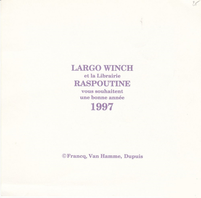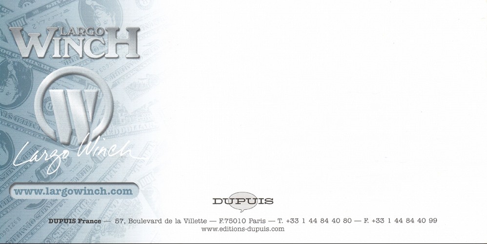 Commentaire : La carte postale exclusive dessinée par Philippe Franck est offerte dans le coffret L'édition Ultime Largo Winch composé de l'affiche du film 40 * 52 cm, l'edition exclusive des 2 premiers tomes de la BD qui ont inspiré le film, L'edition Blu-Ray et DVD du film, le livret de 16 pages sur l'univers de Largo Winch et la lithographie 20 * 26 cm en exclusive dessinée par Philippe Franck.