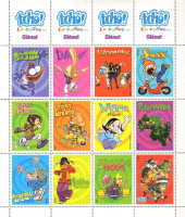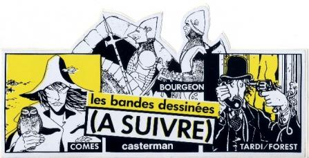 Commentaire : Planche de 8 stickers pour livres et cahiers offerte avec l'hebdomadaire Spirou n°2423 du 20/9/1984. Séries représentées : Génial Olivier, Gully, Yoko Tsuno, Agent 212, L'homme aux phylactères, Natacha, Bobo, Germain et nous.
