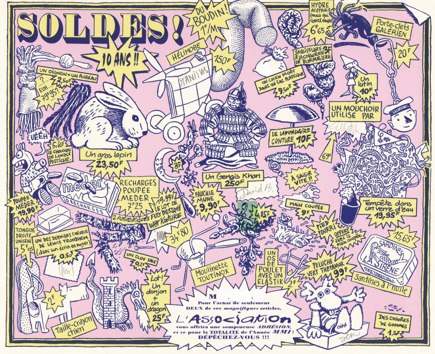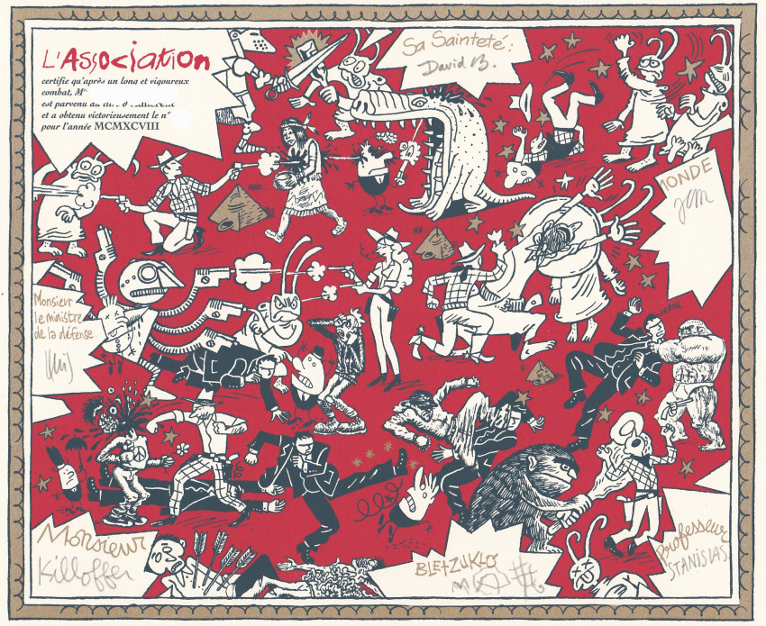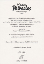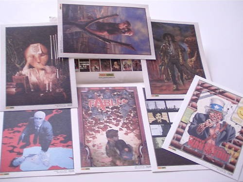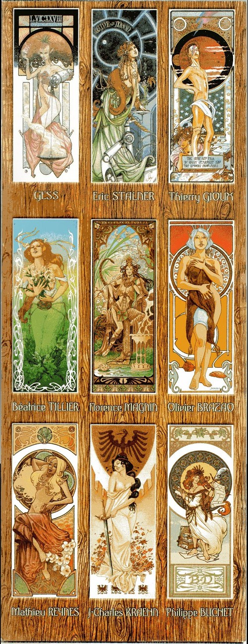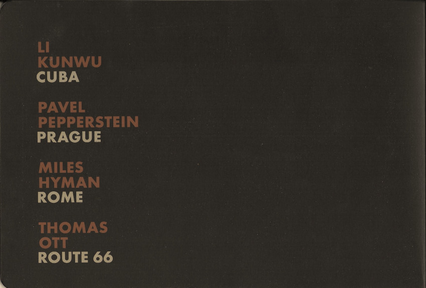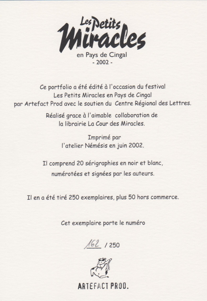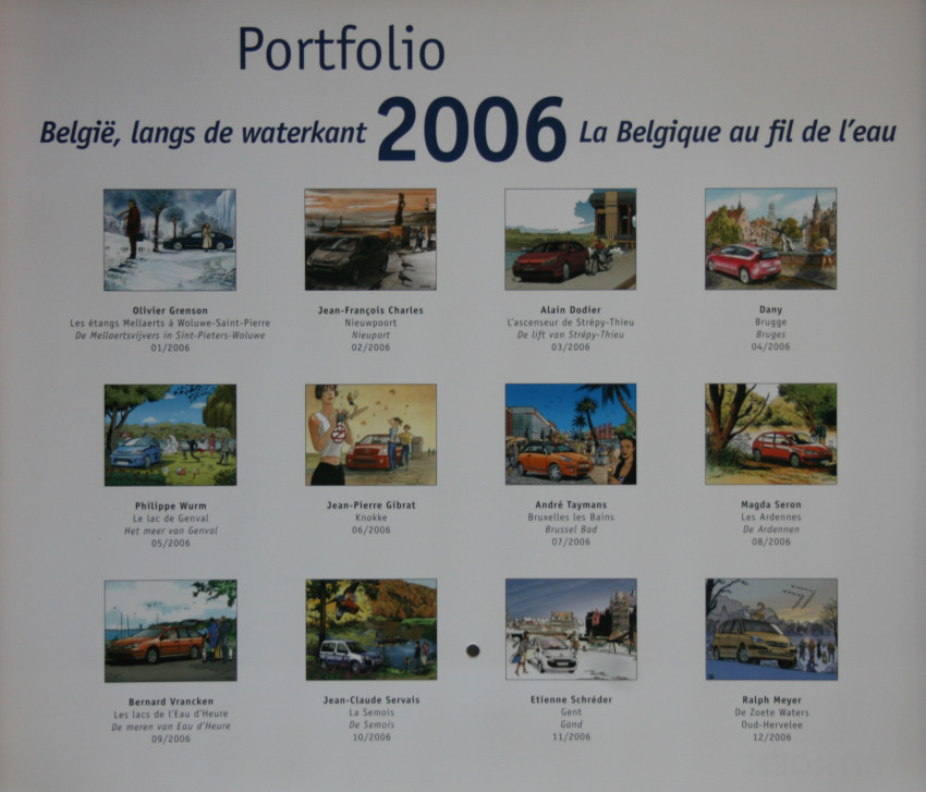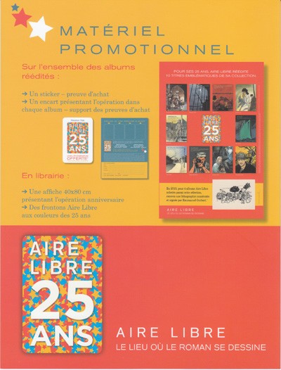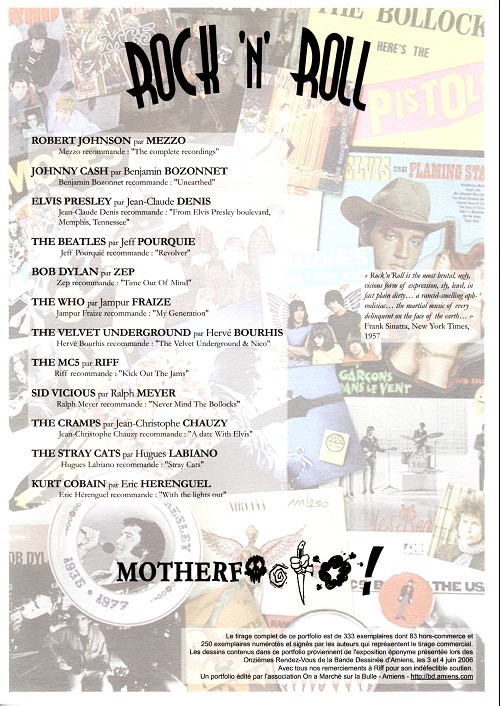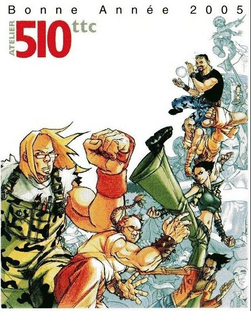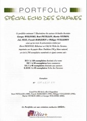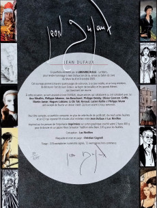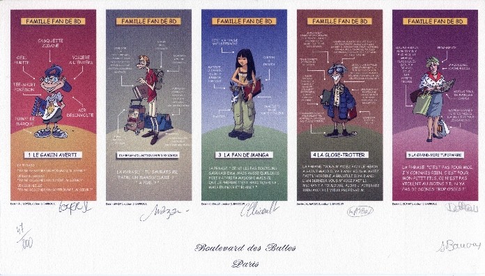 Commentaire : Ce portfolio, présenté sous la forme d'un dépliant, contient 18 illustrations (souvent reprises des couvertures) dessinées par Nicolas de Crécy, Marc-Antoine Mathieu, Éric Liberge, Bernard Yslaire, Hirohiko Araki, Christian Durieux, David Pruhomme, Enki Bilal, Étienne Davodeau, Jirô Taniguchi, Florent Chavouet,