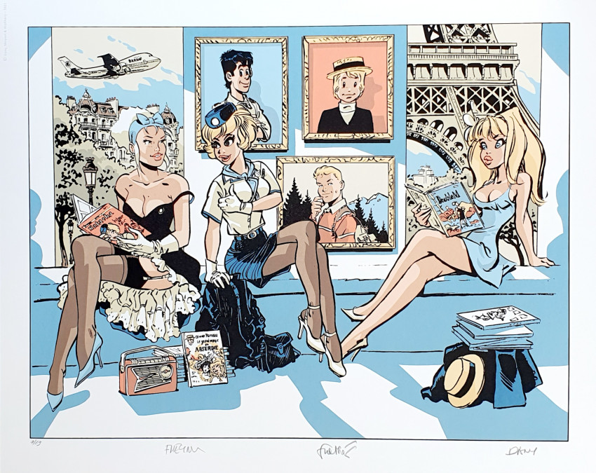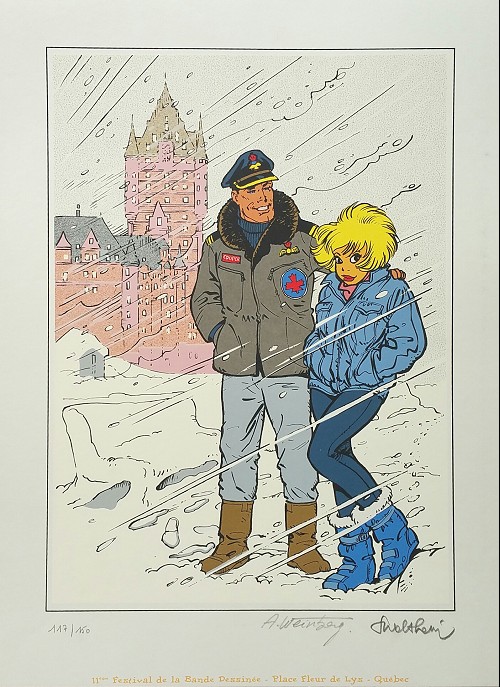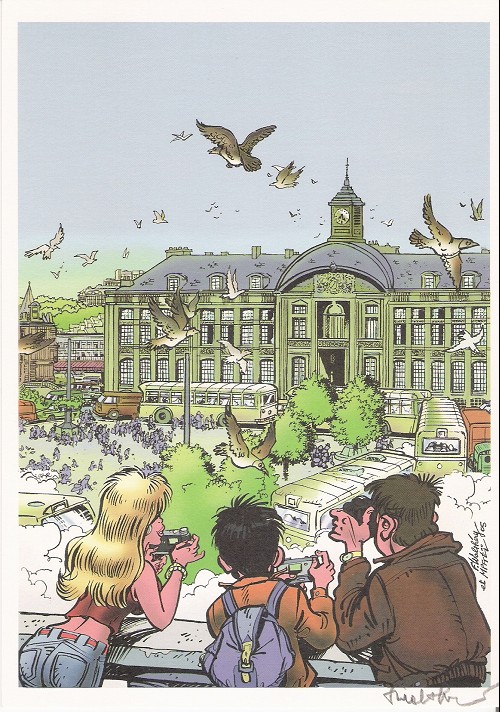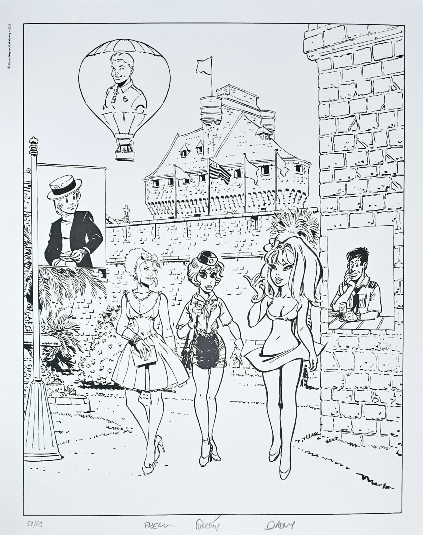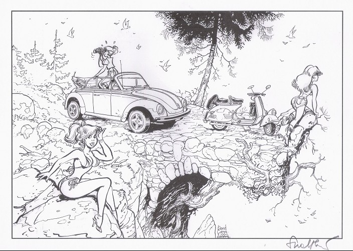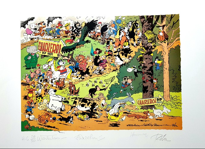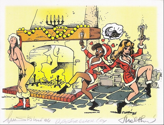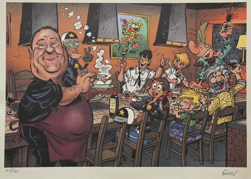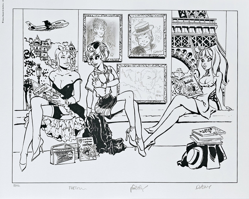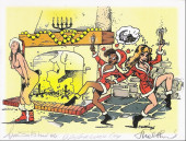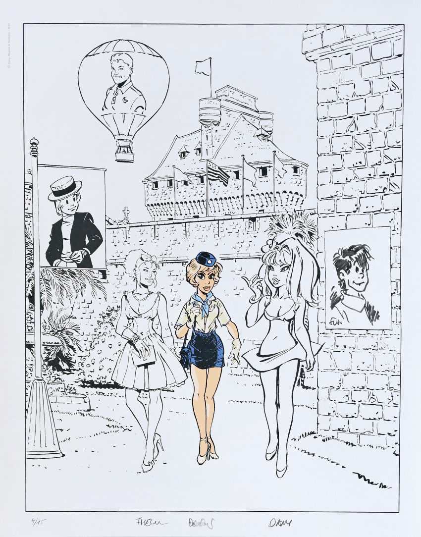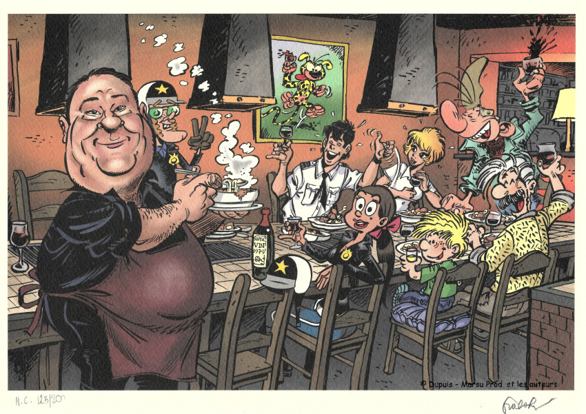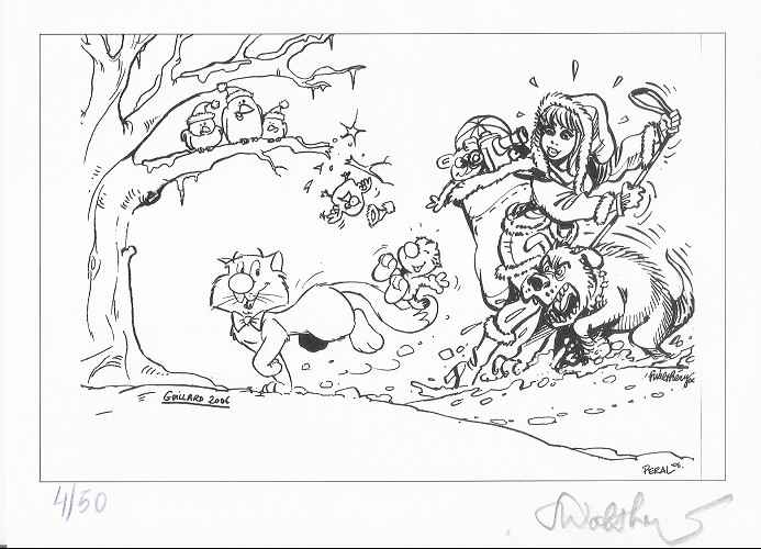 Commentaire : Fait partie des 12 illustrations du portfolio. Co-réalisé par Mittéi et F. Walthéry. Signé par F. Walthéry.