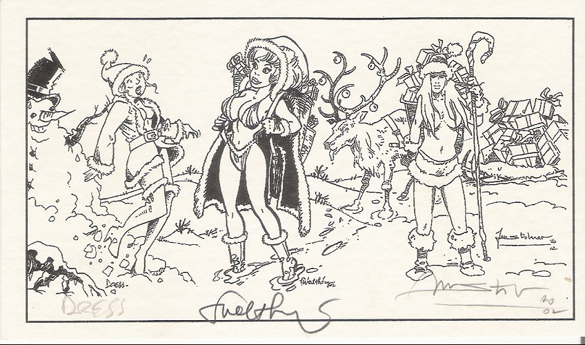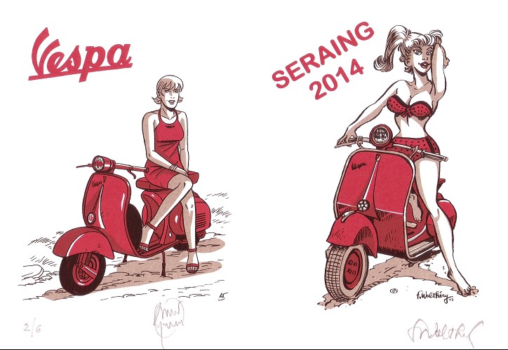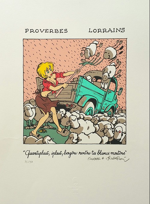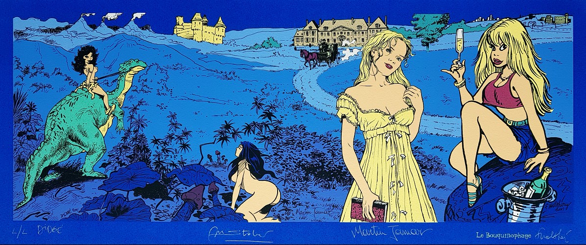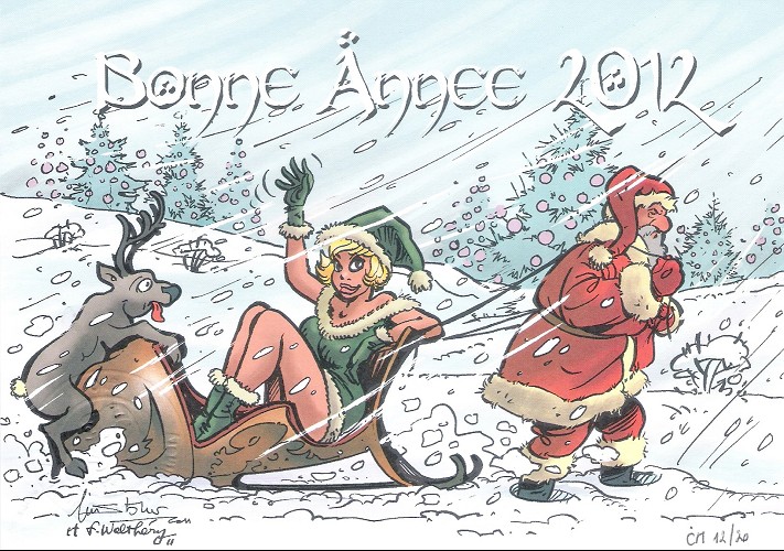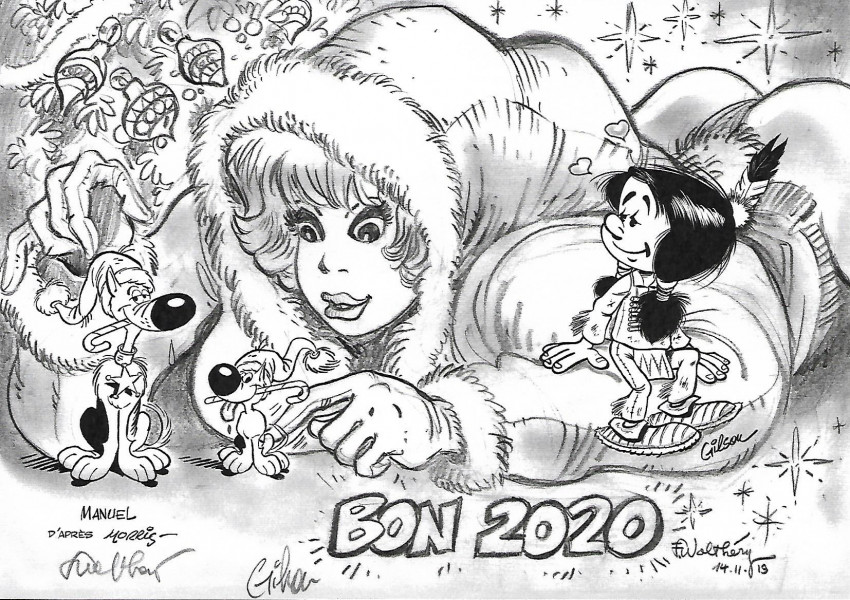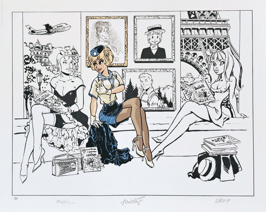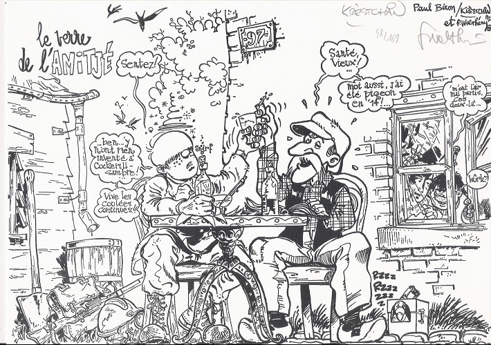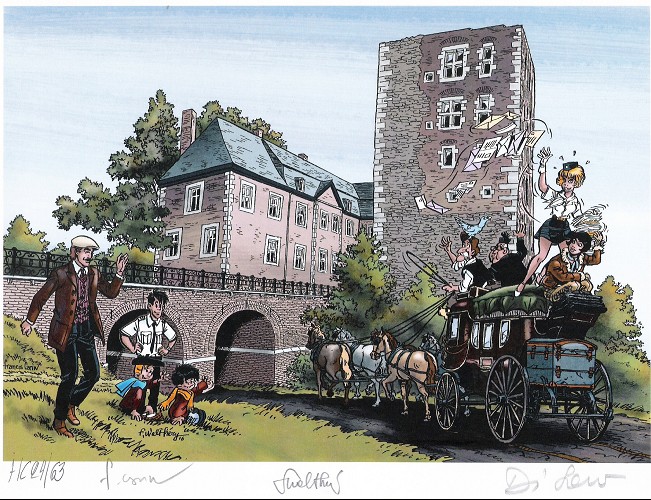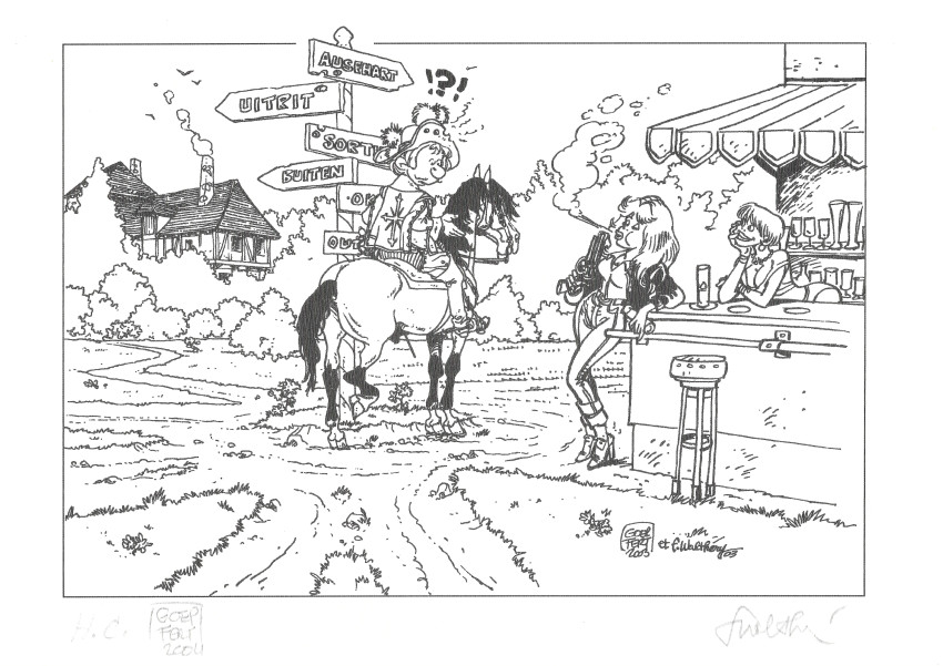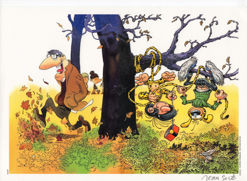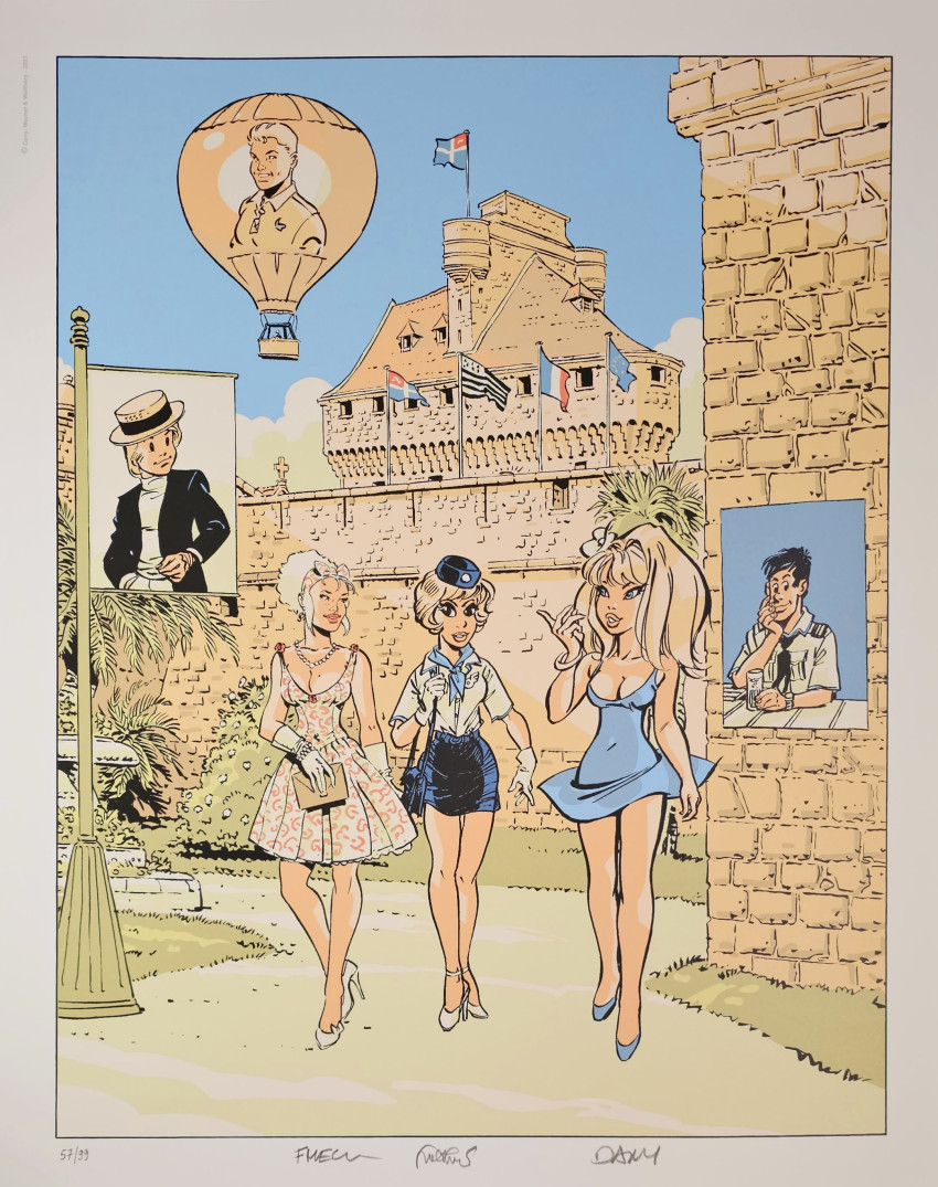 Commentaire : Fait partie des 12 illustrations du portfolio. Co-réalisé par Mittéi et F. Walthéry. Signé par F. Walthéry.